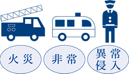 アイホンのファガスシステムにより、管理運営室の親機やスタッフのPHSで緊急通報や生活リズムの異常を検知。サンヨーホームズコミュニティのスタッフが安否確認・連絡・駆けつけ等の見守りサービスを行います。