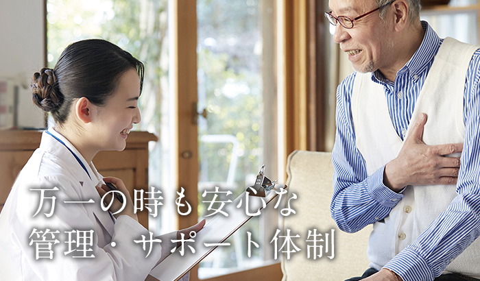 体調の急変など緊急時には昼夜問わず駆けつけ、適切に対処します。